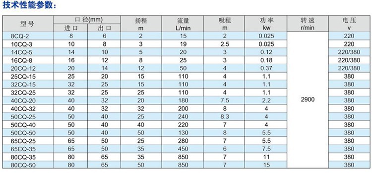 CQ磁力泵广泛应用于化工、制药、石油、电影照相洗印、科研机构、国防工业等单位抽酸、碱液、油类、溶剂类、稀有贵重、有毒、易挥发性液体,以及循环水设备配套、过滤机配套。特别是易漏、易燃、易爆液体的抽送。选用此泵则更为理想。